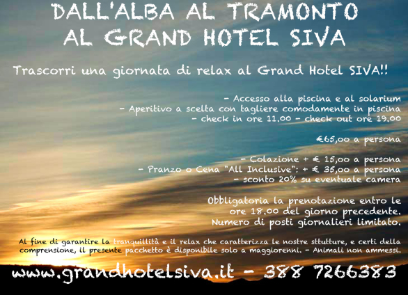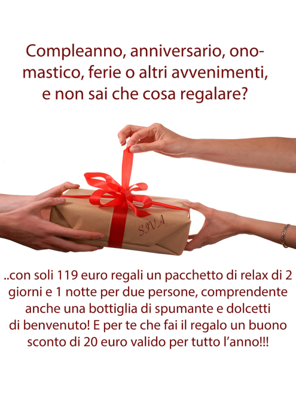 Non hai trovato il pacchetto che cercavi? Nessun problema, possiamo crearlo appositamente per te! scrivi a shoponline@grandhotelsiva.it descrivendo la tua idea e noi la realizziamo per te!
